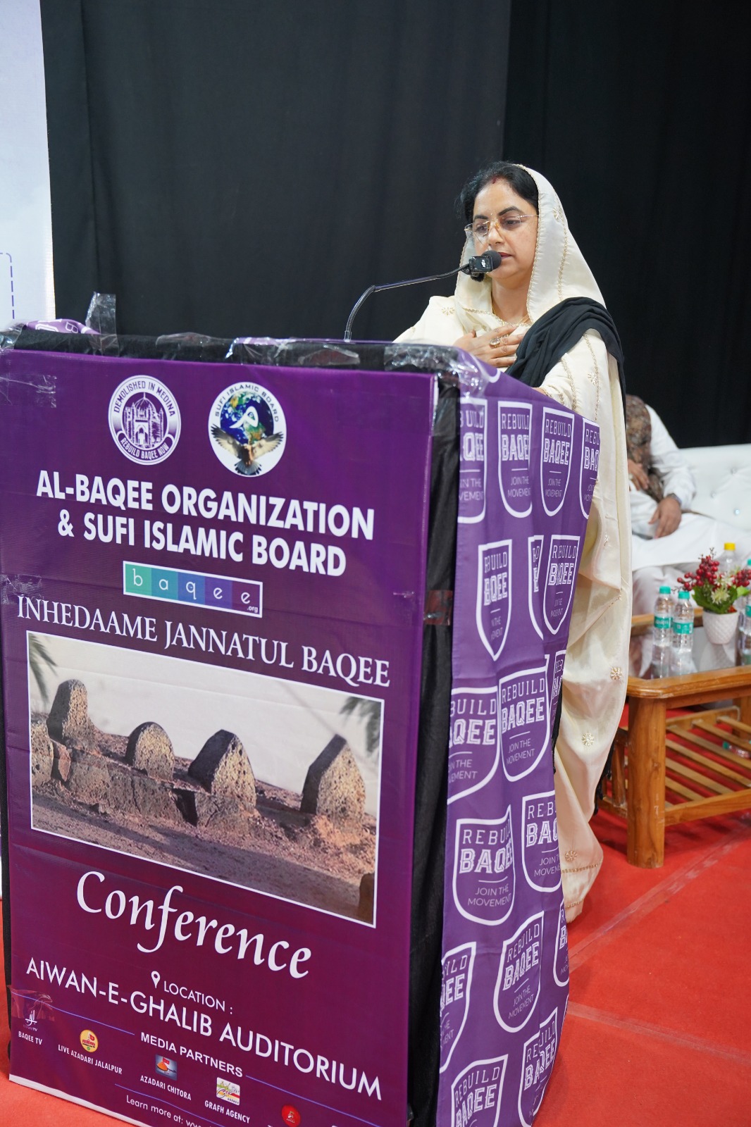 कार्यक्रम में डॉ. सूफ़ी राज जैन और कनीज़-ए-सकीना (दिव्या गुरु माँ) विशेष रूप से संबोधन किया। दोनों विभूतियों ने मदीना स्थित ऐतिहासिक कब्रिस्तान जन्नतुल बक़ी के पुनर्निर्माण को लेकर अपना स्पष्ट विज़न और विचार साझा किए। डॉ. सूफ़ी राज जैन ने इस दिशा में एक ठोस रूपरेखा प्रस्तुत करते हुए लोगों को इस मुहिम से जुड़ने का आह्वान किया।