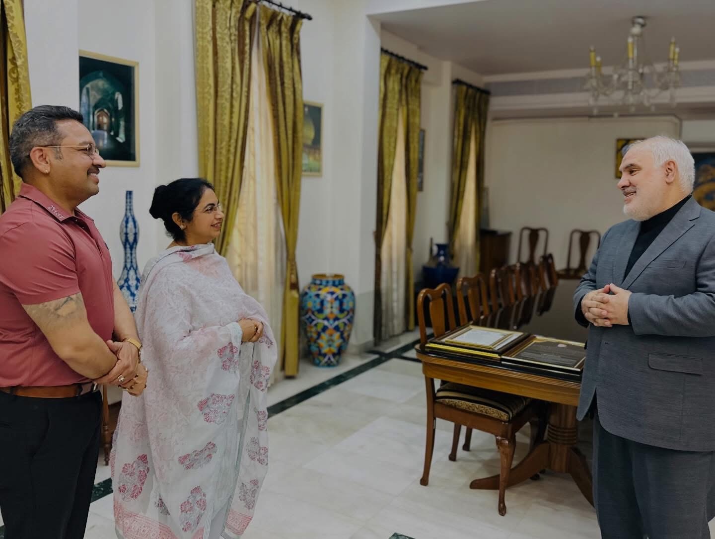 नई दिल्ली स्थित ईरान दूतावास में Dr. Sufi Raj Jain (गुरु जी) और Kaneez-e-Sakina Divia (गुरु मां) ने भारत में ईरान के राजदूत Dr. Mohammad Fathali से शिष्टाचार मुलाकात की।